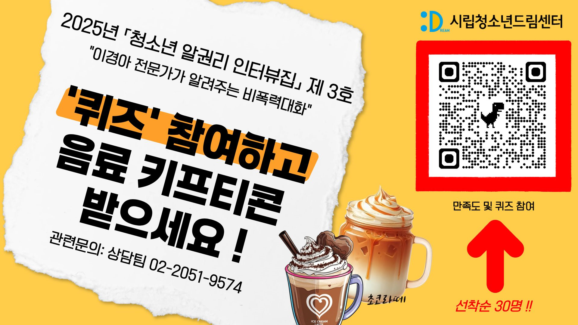 ■ 만족도 조사와 퀴즈에 참여해 주신 분들 중 선착순 30분께 감사의 의미로 소정의 선물(음료 기프티콘)을 드릴 예정입니다.