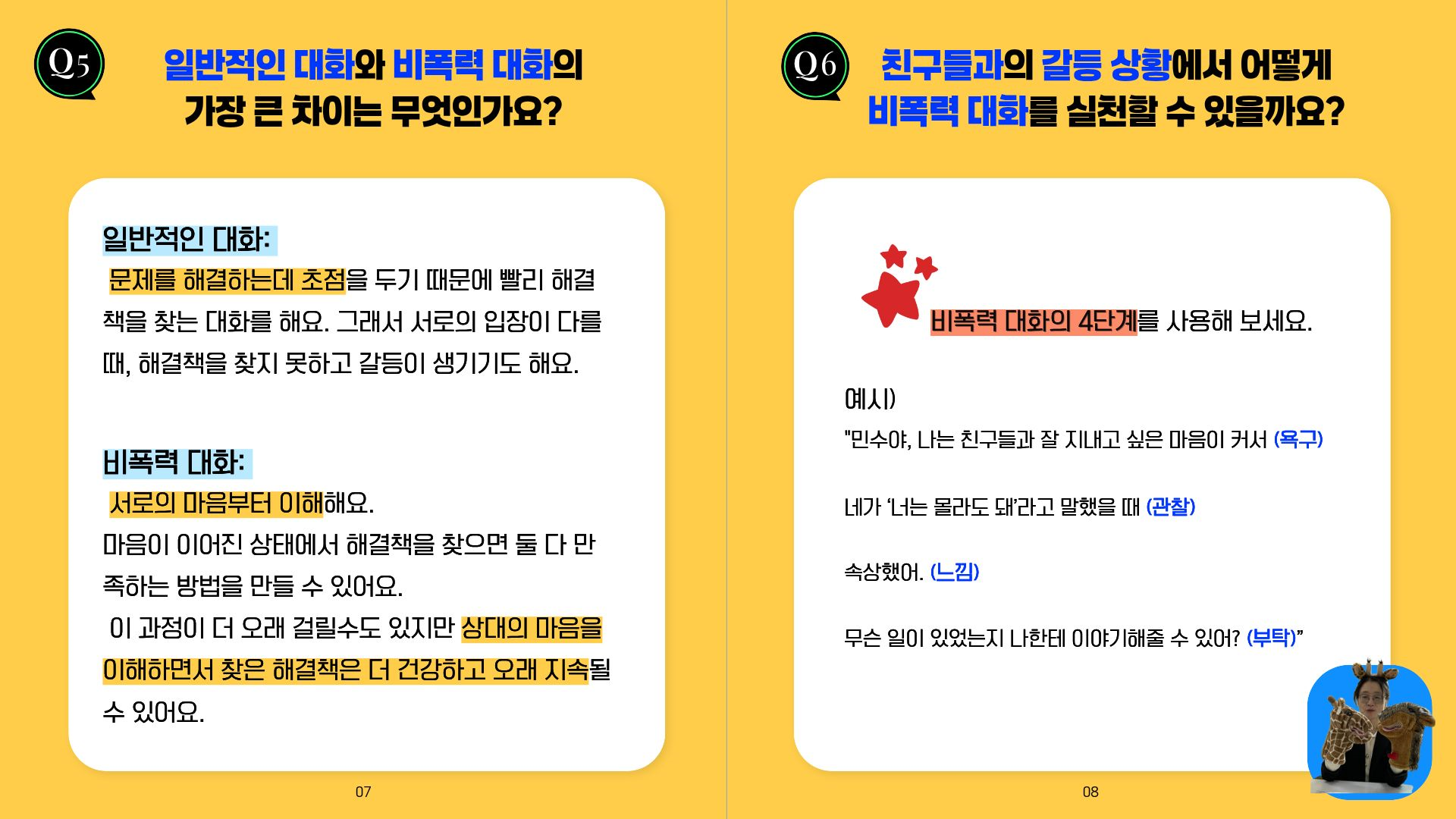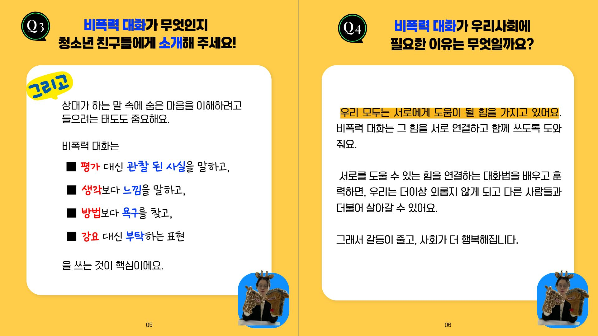 대화의 중요성을 아는 청소년 친구들이 많아진 것인지! 비폭력 대화에 관심이 있는 친구들이 많았어요.